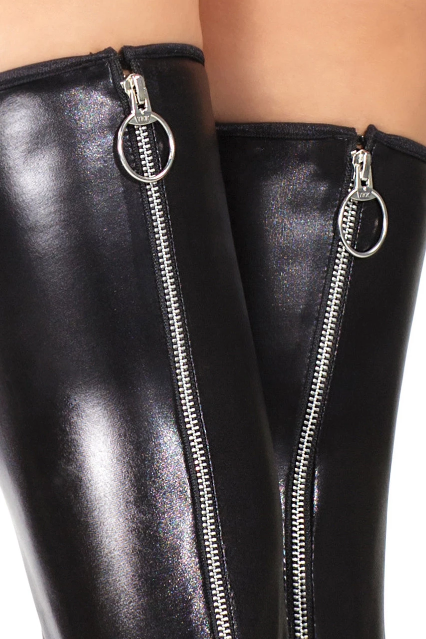 - 2 Pieces Included: Pair of faux leather thigh highs with back zippers