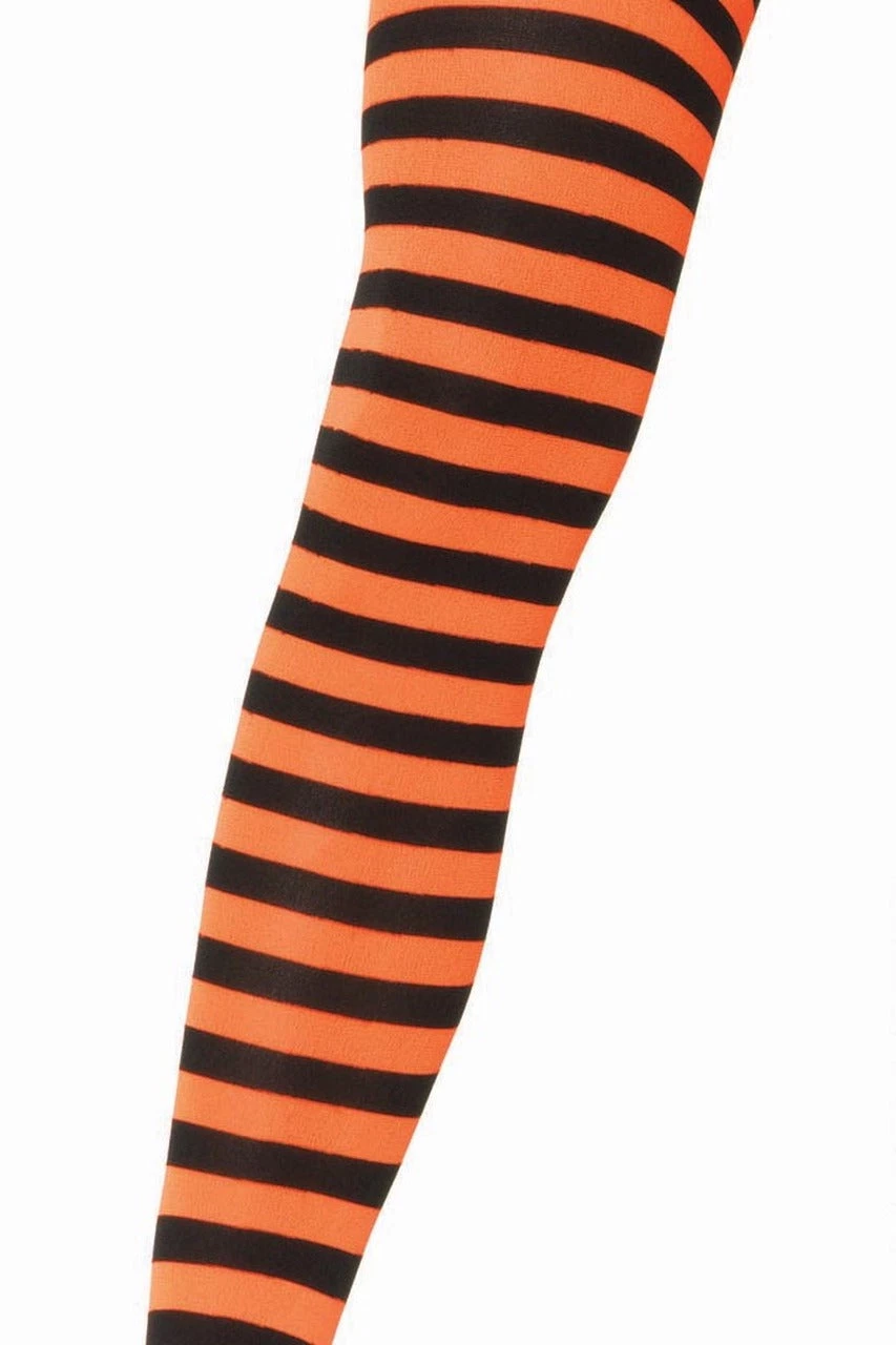 Make a statement with your legs featuring these Black & Orange Striped Pantyhose with opaque nylon stretch fabric and pantyhose with feet.