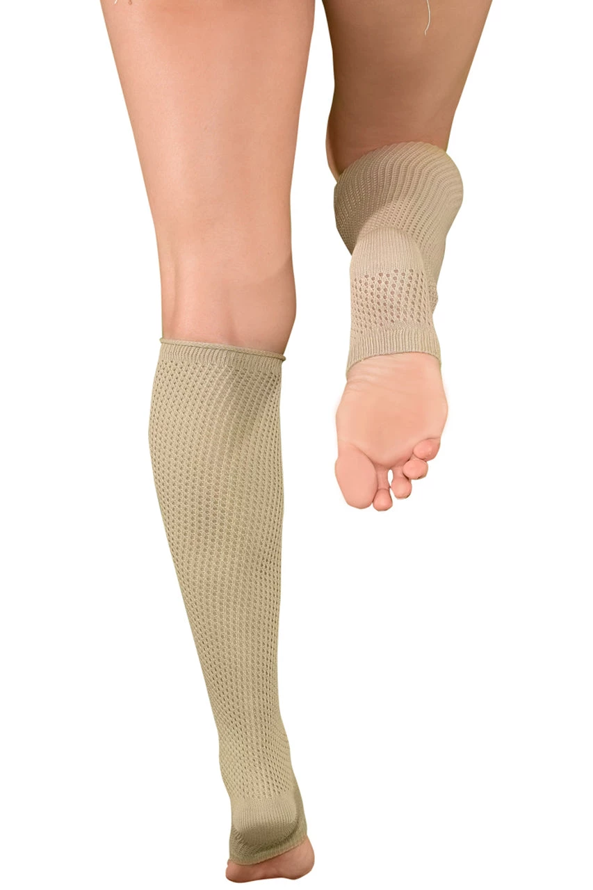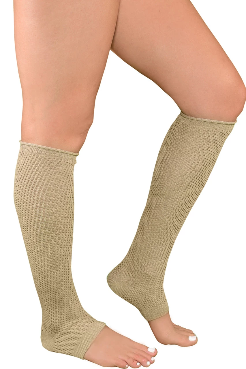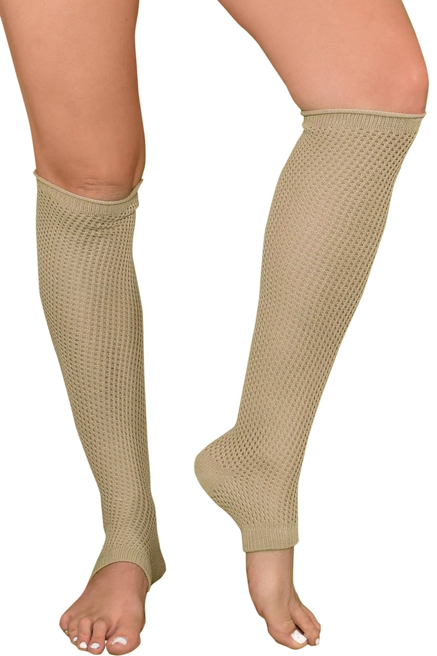 Take a turn around the room in these warm and cozy Tan Dance Style Textured Leg Warmers that feature textured knit knee highs with cutout feet, stretch knit bands that fit comfortably around the arches, and banded tops.